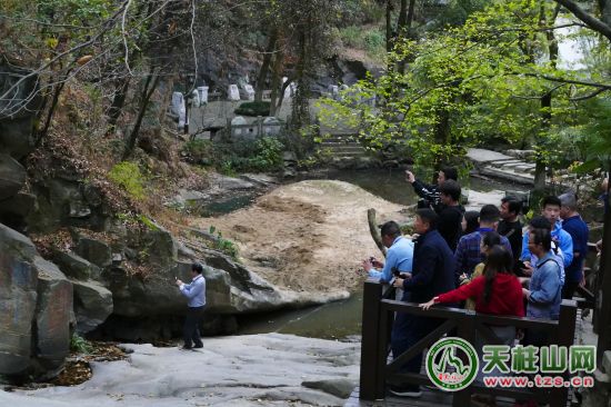 說(shuō)好只是散心,并不帶隊(duì),所以輕松多了,目光可以隨著上山的松鼠,一蹦一躍,消失在松林里;心情可以隨著剛探出頭的竹筍,往更高的竹節(jié)攀越。人是個(gè)善于調(diào)整精靈,心情也會(huì)陷入閑情的包容之城中,境由心生。置身天柱山之中,山的博大包容自然會(huì)緊緊相隨,導(dǎo)游嘴里的景觀,都如云層一一散淡,而我進(jìn)入山中,是否要尋找李白、白居易、王安石、蘇東坡、黃庭堅(jiān)等文學(xué)大家在此留下的足跡呢?還是要傾聽(tīng)到他們?cè)诖肆粝碌能O音?問(wèn)題有點(diǎn)漂浮不定,反讓腳步更加殷實(shí)。景觀之中納入人文的元素,生命力自然會(huì)更長(zhǎng)久。天柱山之前,也曾補(bǔ)過(guò)課,知道一點(diǎn)大家與天柱山的故事,如白居易留下了“天柱一峰擎日月,洞門千仞鎖云雷”。蘇東坡留下了“青山只在古城隅,萬(wàn)里歸來(lái)卜筑初”。王安石留下了“野性堪如此,潛山歸去來(lái)”。公元前106年,漢武帝劉徹登臨天柱山封號(hào)“南岳”。還有,天柱山幾乎包羅了世界上所有花崗巖風(fēng)景區(qū)的地貌景觀:奇峰、怪石、洞穴、峽谷等勝景。尤以花崗巖崩塌及堆壘景觀典型而堪稱世界一絕,成為國(guó)內(nèi)同類景觀的代表而冠名為“中國(guó)天柱山型花崗巖地貌”。文景相宜,不僅是一種厚重體現(xiàn),更是一種自然的厚待。這種厚實(shí)如山下的三祖禪寺,一花一世界,一葉一如來(lái),耳聽(tīng)松濤,無(wú)窮般若心自在,俯視滾滾紅塵的萬(wàn)千生命。當(dāng)心寧?kù)o到聽(tīng)禪物語(yǔ),聆聽(tīng)花開(kāi)之時(shí),就可以封塵所有的記憶,撇開(kāi)所有的糾纏,拋開(kāi)所有的紛擾,一個(gè)人,一座山,足矣。