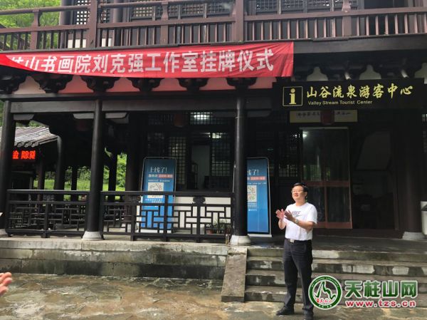 近日,天柱山書畫院“劉克強(qiáng)工作室”掛牌儀式在山谷流泉文化園隆重舉行。此次活動(dòng)由天柱山管委會(huì)、潛山市文聯(lián)聯(lián)合舉辦,天柱山書畫院、天柱山畫家村美術(shù)館具體承辦。天柱山管委會(huì)、潛山市文聯(lián)、天柱山鎮(zhèn)、天柱山旅游公司等相關(guān)單位負(fù)責(zé)人;國內(nèi)知名畫家劉克強(qiáng)、湯敏杰、余國友;國家注冊拍賣師李樹友以及來自全國各地的企業(yè)家,本地書畫愛好者,圈內(nèi)好友等幾十人參加了揭牌儀式。