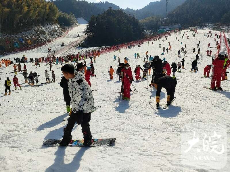 據(jù)天柱山滑雪場(chǎng)負(fù)責(zé)人張斌介紹,連日來,來天柱山滑雪的游客均超過千人之上。