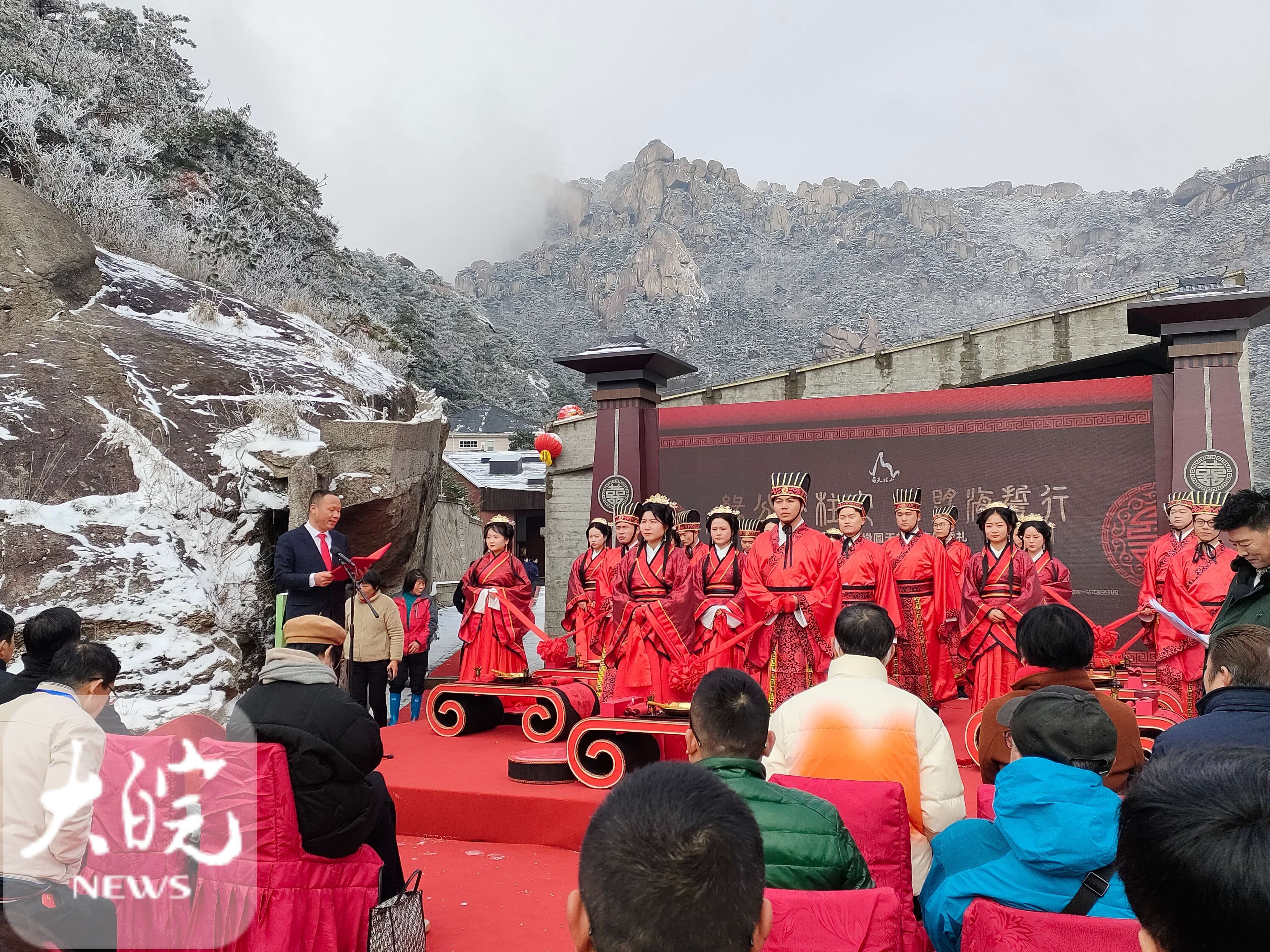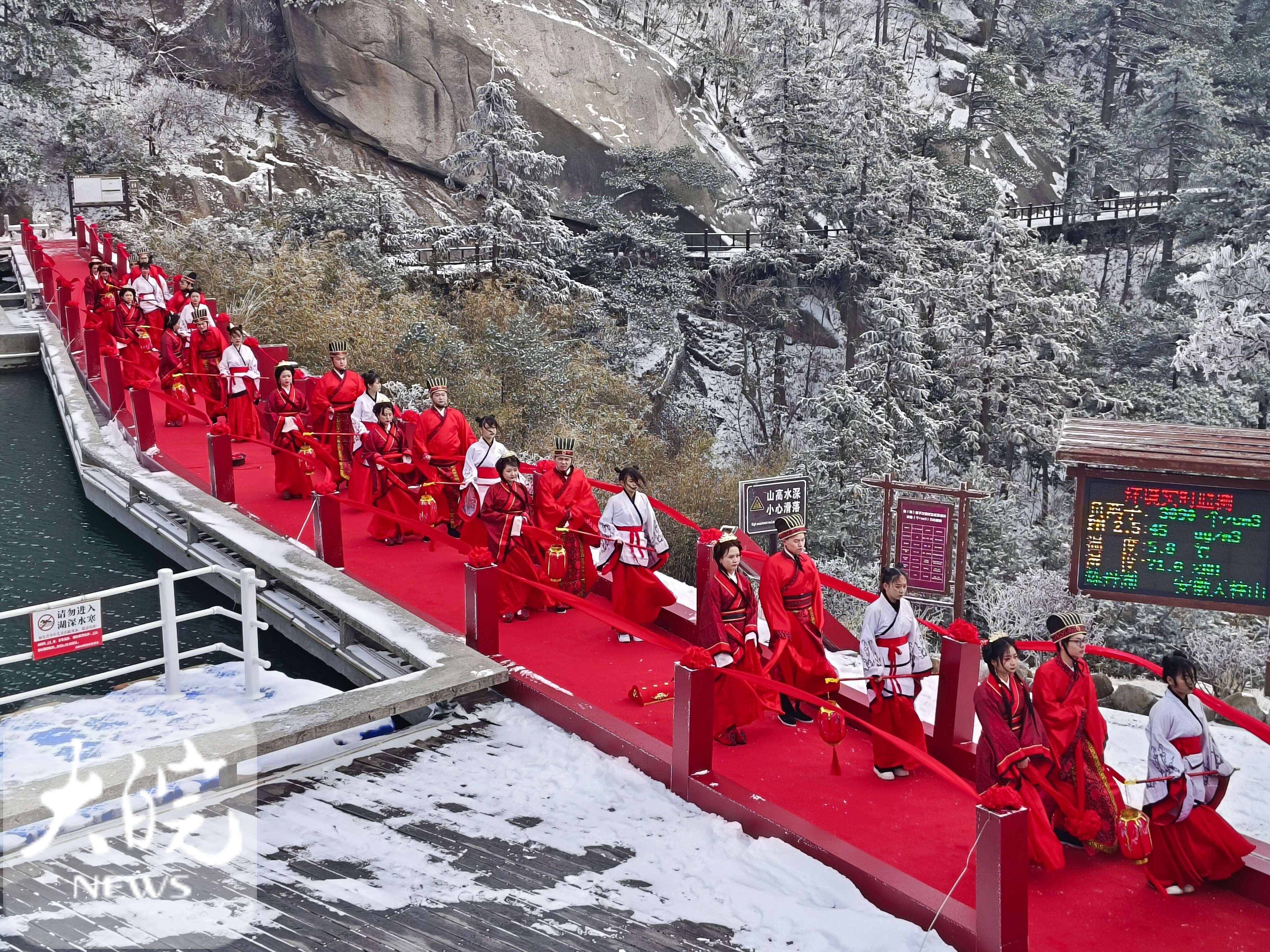 大皖新聞訊 ? ?2月13日-14日,由安徽天柱山風(fēng)景名勝區(qū)管委會、潛山市文化旅游體育局主辦,安徽省攝影行業(yè)協(xié)會、天柱山旅游發(fā)展有限公司承辦的“緣份天柱定 山盟海誓行”首屆天柱山“山盟海誓”婚旅文化節(jié)成功舉辦。來自上海、北京、海南、湖北、安徽、杭州攝影行業(yè)協(xié)會、婚紗攝影企業(yè)負(fù)責(zé)人和全省各地的10對新人相聚在美麗的天柱山,來了一場漫游愛情之旅。