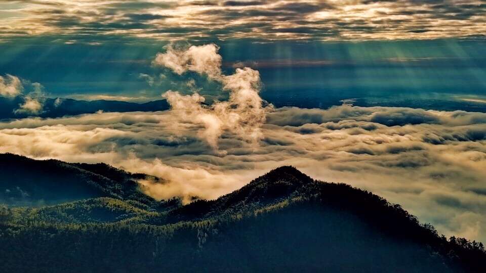 造成了壯觀的云霧霞光,